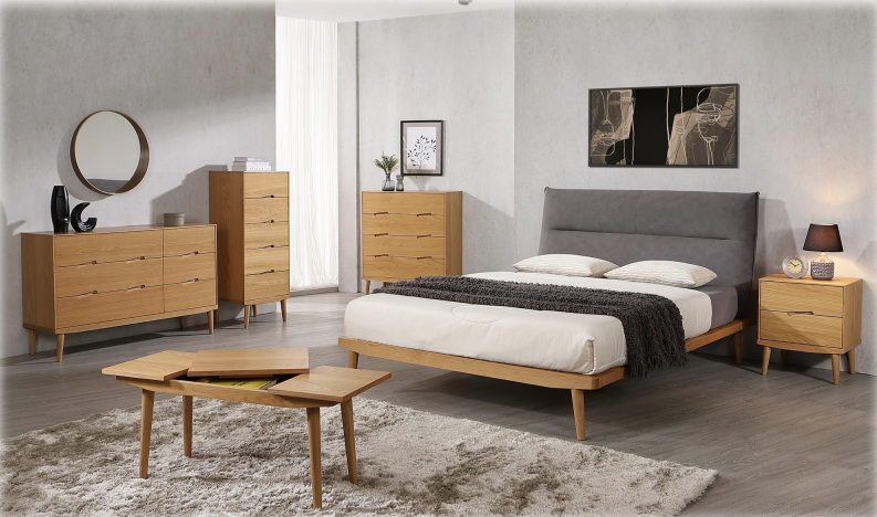 Bed frames, side tables, dressers, chests, and wardrobes designed for practical living and efficient international shipping.