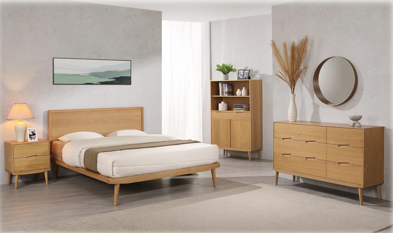 Bed frames, side tables, dressers, chests, and wardrobes designed for practical living and efficient international shipping.